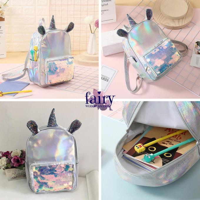 Jual Tas Ransel Backpack Fashion Unicorn Sequin Usap Model Justice