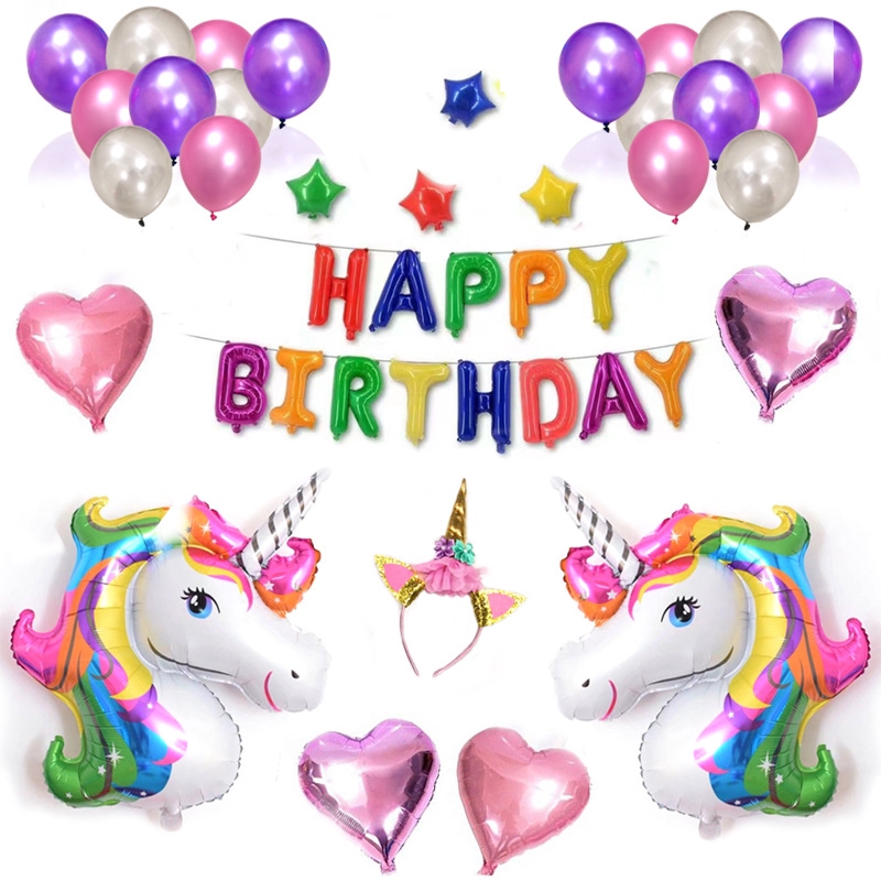 Zljq 9pcs Unicorn Balloons Party Supplies Happy Birthday Banner
