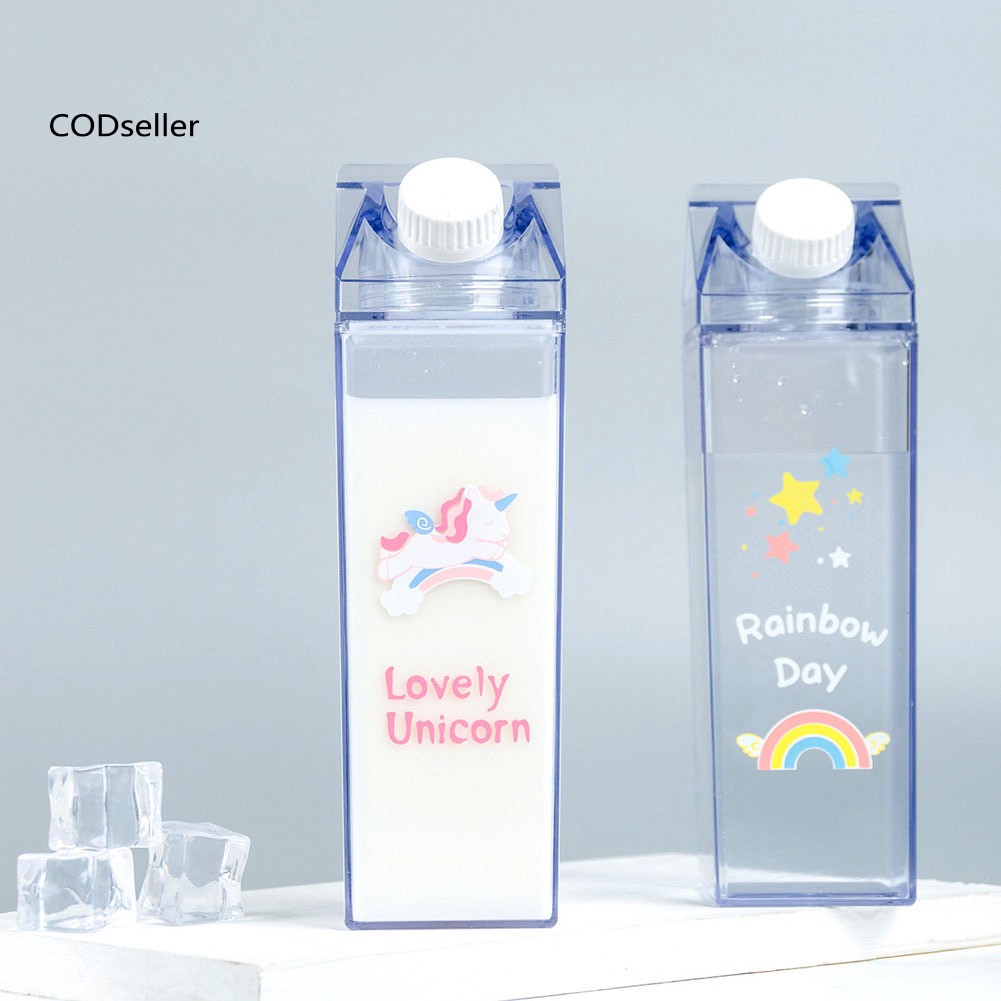 Cod 500ml Cartoon Unicorn Rainbow Transparent Milk Fruit Juice