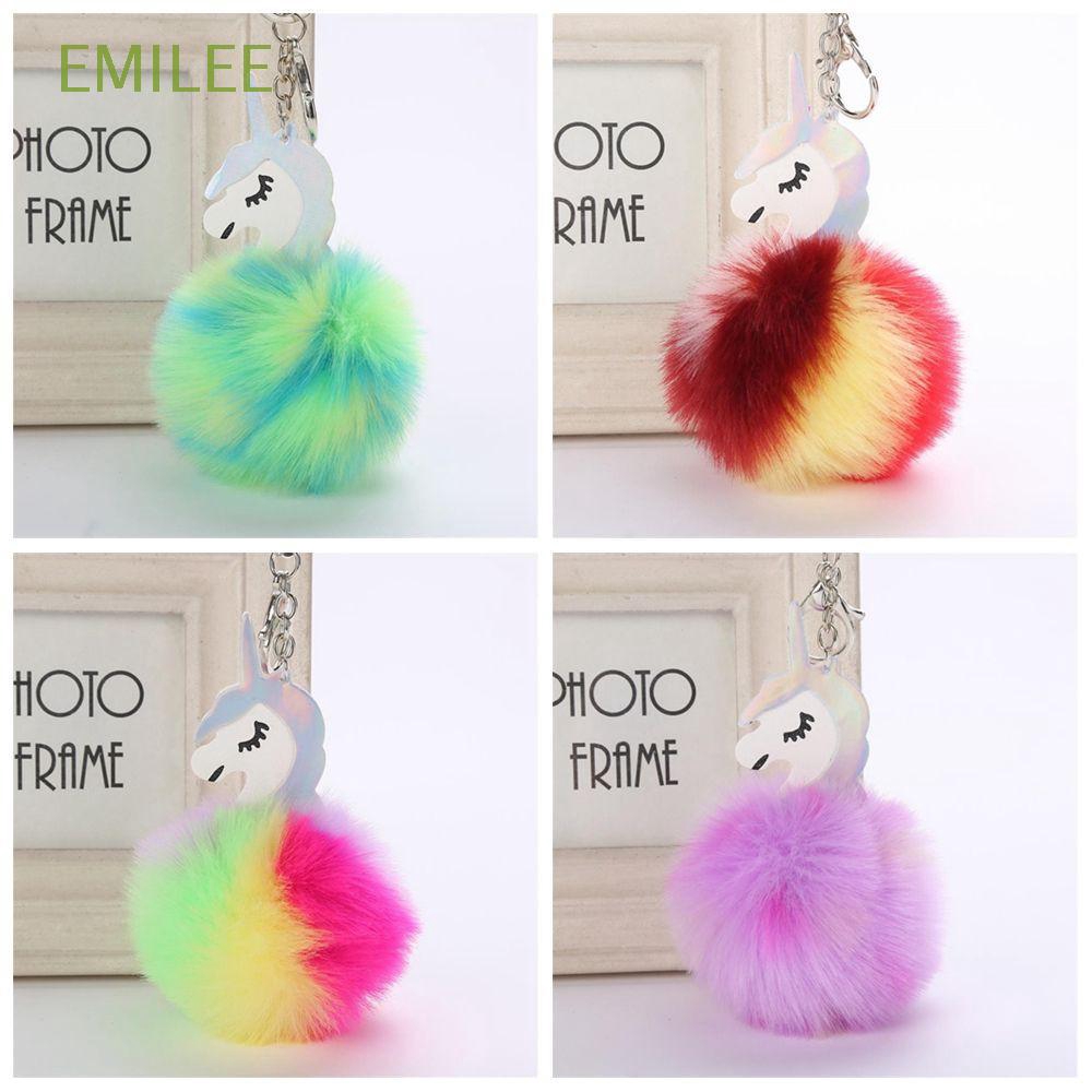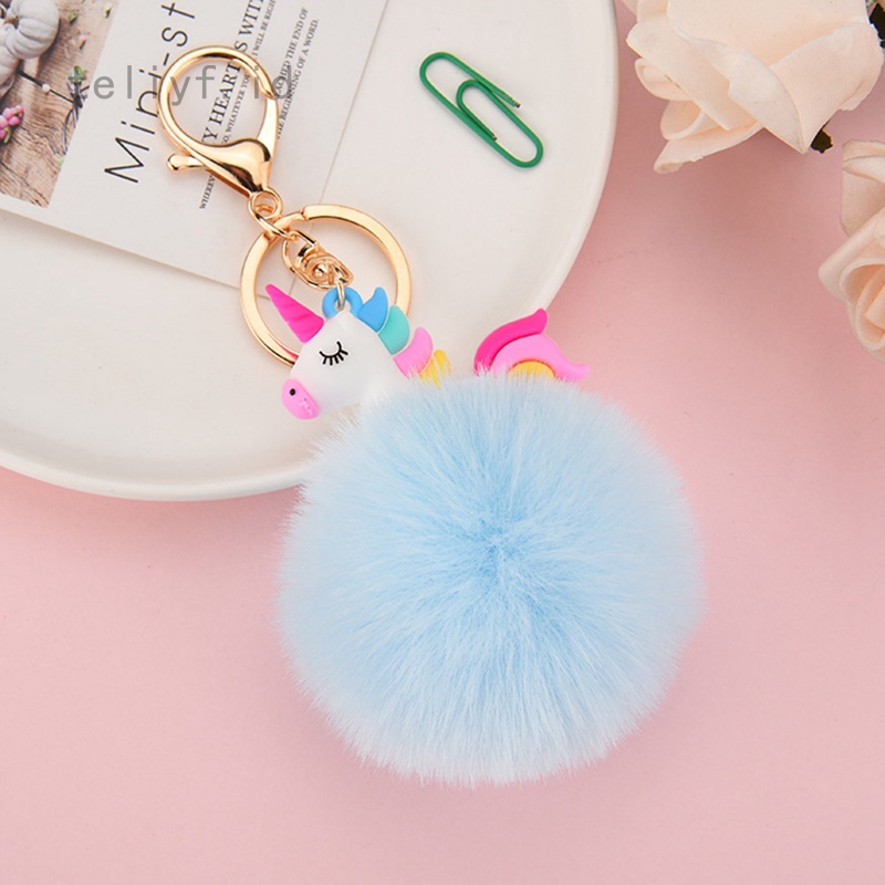 Buy Unicorn Keychain Pompom Ball Faux Rabbit Fur Key Chain Bag